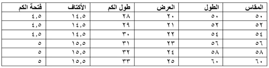 - تنوع المقاسات: جميع المقاسات متوفرة كما هو موضح بالجدول لضمان المقاس المثالي لكل سيدة.